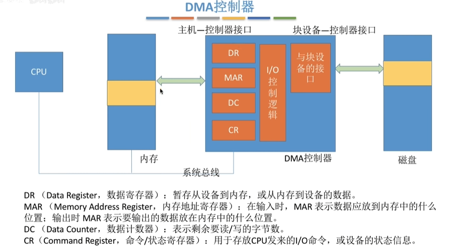优点:数据传输以”块”为单位,CPU介入频率进一步降低。数据的传输不再需要先经过CPU再写入内存,数据传输效率进一步增加。CPU和I/O设备的并行性得到提升。