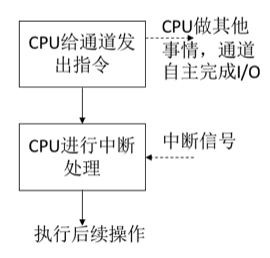 通道会根据CPU的指示执行相应的通道程序,只有完成一组数据块的读/写后才需要发出中断信号,请求CPU干预。